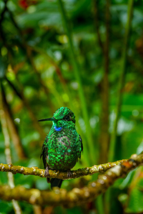 They’re the world’s smallest species with incredible feathers, beaks, and behaviors – they even fly backward! Monteverde’s national park wows you, and you spot hummingbirds inside. But photos prove tricky there.